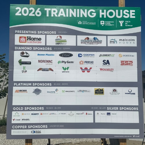 The Training House program gives first-year TRU students in carpentry, plumbing, electrical, and HVAC programs the opportunity to work on a real home from the foundation up to the lock-up stage, learning valuable skills they will carry into their careers. Once CHBA CI members complete the home, it becomes the grand prize in the YMCA Dream Home Lottery, with proceeds funding vital community programs across Kamloops and the surrounding area.